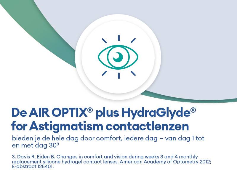 Air Optix plus Hydraglyde for Astigmatism zijn maandlenzen die