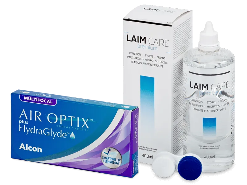 Air Optix plus HydraGlyde Multifocal (6 lenzen) + Laim Care lenzenvloeistof 400 ml